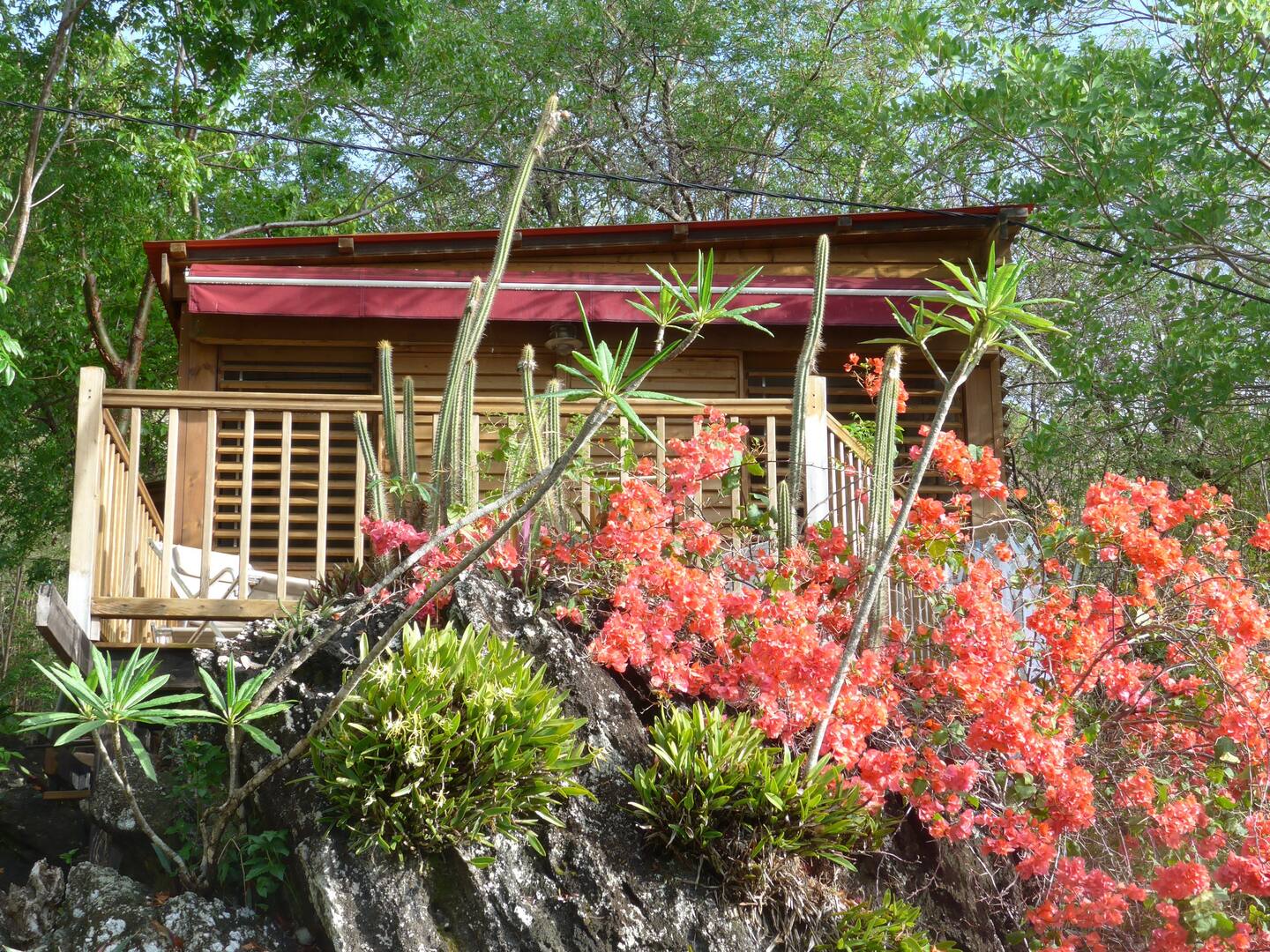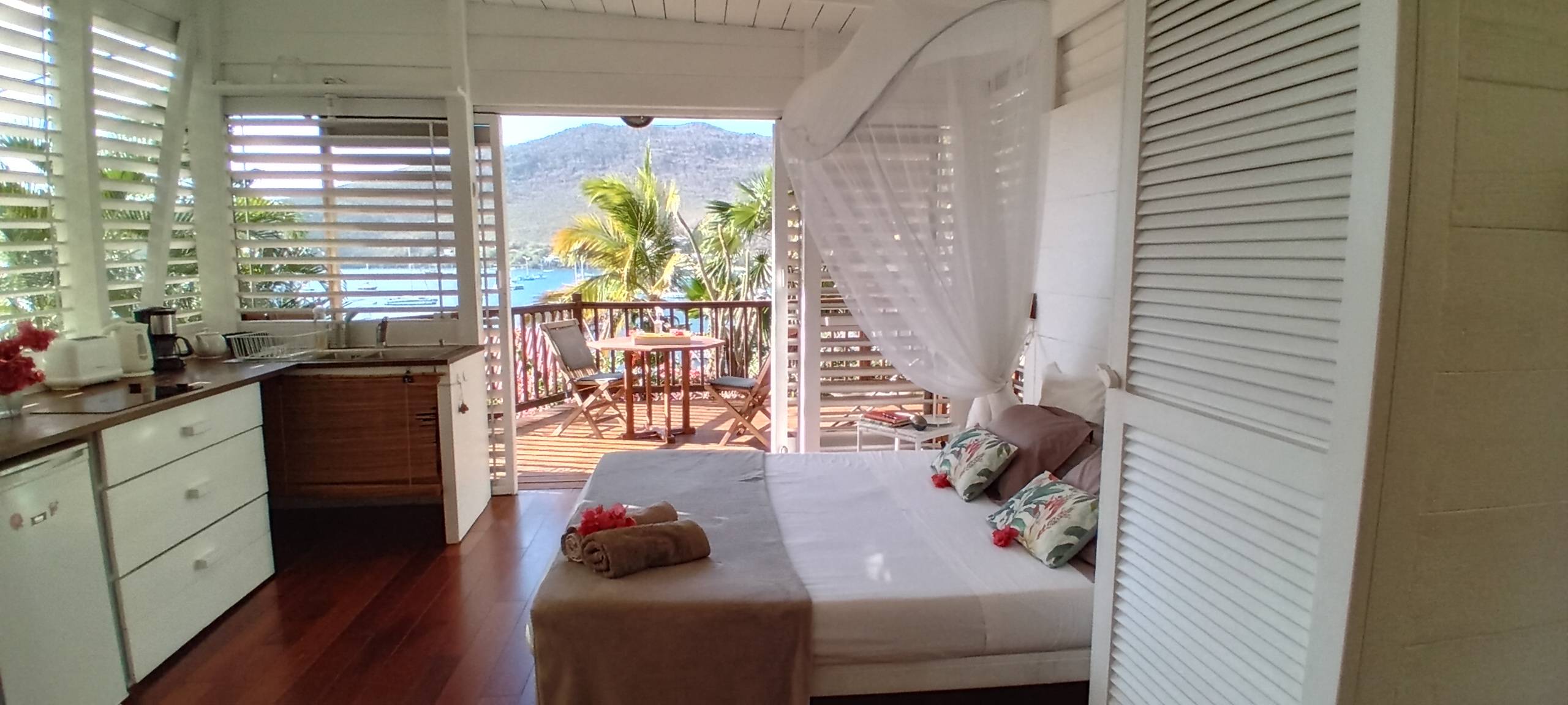 Goûtez à la douceur de vivre créole dans notre bungalow gîte tout en bois ventilé par les alizés, face à une vue de rêve!